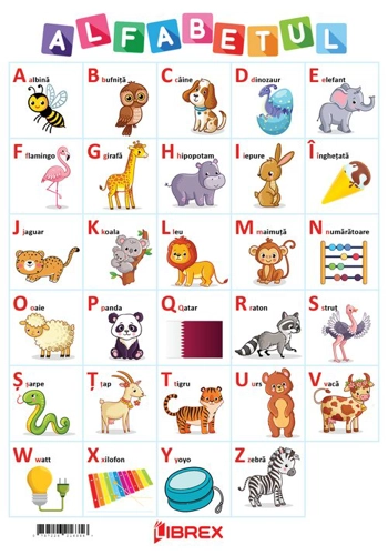 Aceasta colectie de PLANSE COLOR cu dimensiuni de 21 x 30 cm este instrumentul ideal pentru imbogatirea si fixarea cunostintelor dobandite la gradinita sau la scoala. Plansa ALFABET poate decora atat peretii camerei copiilor, cat si pe cei ai salii de clasa. Plansa este prezentata in formatul A4.