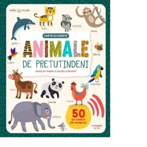 Asculta cum „vorbesc“ animalele! Cum face vaca? Dar elefantul? Ce sunete scoate pitigoiul? Peste 50 de animale diferite prind viata prin apasarea unui buton. La ferma, in savana sau in jungla – poti asculta sunetele pe care le scot animalele de peste tot.