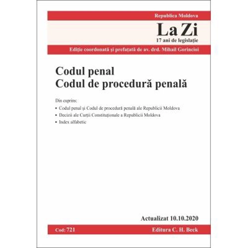 Codul penal. Codul de procedura penala – Republica Moldova. Cod 721. Actualizat la 10. 10. 2020