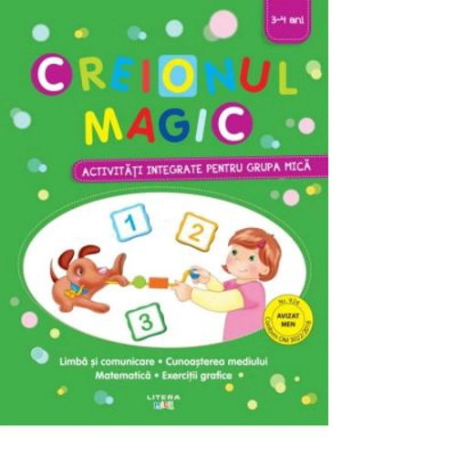 Cartile de activitati din seria „Creionul magic“ au fost concepute ca material de lucru pentru gradinita si sunt grupate pe trei niveluri, adaptate celor trei varste prescolare. In fiecare vei gasi aproape 100 de activitati si jocuri care ajuta la fixarea competentelor referitoare la limba si comunicare, matematica si cunoasterea mediului, dar si exercitii grafice pentru antrenarea mainii la scris si desenat.