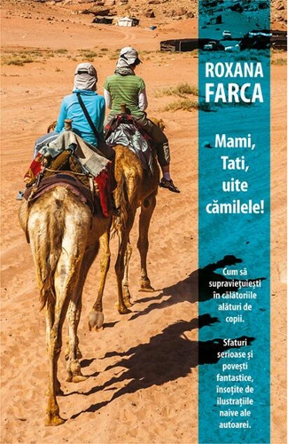 Cum sa supravietuiesti în calatoriile alaturi de copii. Sfaturi serioase pentru părinți și povești fantastice pentru copii, însoțite de ilustrațiile naive ale autoarei. Cămilele rezistă mult timp fără apă, în condițiile extrem de dificile ale deșertului. Părinții iubitori de călătorii rezistă tuturor scuzelor și pleacă în vacanțe alături de copii, de la bun început. Roxana Farca, scriitor, fotograf și blogger de călătorie, a adunat într-un singur loc toate experiențele trăite alături de familie timp de paisprezece ani, cu vacanțe care au inclus atât zone rurale sau urbane, cât și aventuri în deșert sau între ghețarii Patagoniei. Această carte dezvăluie motivele pentru care copilul a făcut mereu parte din echipă, cum s-a pregătit fiecare tip de vacanță și care sunt cunoștințele cele mai importante pe care trebuie să le aibă orice părinte, înainte de a pleca la drum, în timpul vacanței și după ce aceasta se încheie.