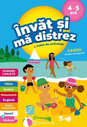 Caiet de activități special concepute pentru copiii de 4-5 ani de către profesori. Cei mici vor învăța și se vor distra prin intermediul exerciţiilor de scris, citit, matematică și limba engleză, versurilor haioase și jocurilor atractive, toate având un grad de dificultate progresiv, astfel încât copiii să-și dezvolte noi abilități pas cu pas. Iar pentru finalizarea fiecărei lecții, primesc stickere recompensă colorate! În plus, cartea vine cu explicații suplimentare pentru părinți, ca aceștia să-i ajute pe micuți să-și atingă obiectivele urmărite și să deprindă abilitatea exersată prin fiecare exercițiu.