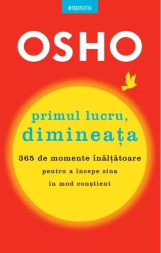 Probabil că, în fiecare dimineaţă, primul lucru pe care îl faci este să citeşti ştirile şi să îţi verifici e-mailurile – poate nu cel mai inspirat mod de a-ţi începe ziua. În Primul lucru, dimineaţa, Osho discută despre o gamă largă de subiecte, special selectate pentru dimineaţă, oferindu-ţi astfel un alt fel de rutină, un strop de meditaţie pe care să o practici ca să dobândeşti energia necesară pentru a-ţi începe ziua. Găseşte-ţi timp dimineaţa, imediat după trezire, pentru a sta în linişte, singur, şi pentru a citi cele 365 de pasaje, ordonate astfel încât să fie citite cronologic, nu la întâmplare. Cel mai bun moment pentru a citi aceste texte este înainte ca mintea să se implice în activităţile zilei. Indiferent dacă eşti obişnuit să meditezi sau abia te pregăteşti să-ţi descoperi lumea lăuntrică, această carte îţi poate schimba modul în care îţi trăieşti fiecare zi şi întreaga viaţă. Alte titluri pentru Osho International Foundation (autor): Osho. Curs de meditație (2024) ,