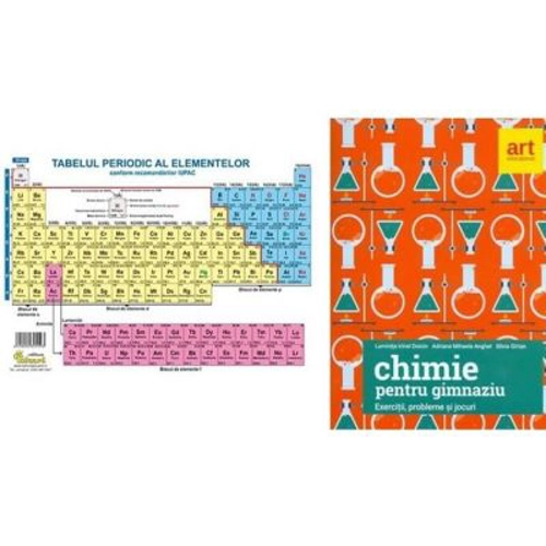 1. Tabelul periodic al elementelor tabelul lui Mendeleev 2. Exercitii, probleme si jocuri de chimie pentru gimnaziu - Luminita Irinel Doicin Aceasta lucrare a fost realizata in conformitate cu programa scolara in vigoare, aprobata prin ordinul ministrului educatiei, cercetarii si inovarii nr. 5099/09. 09. 2009. Prezentul auxiliar a fost avizat de Ministerul Educatiei Nationale prin Ordinul nr. 3530 din 04. 04. 2018 si se regaseste la pozitia nr. 32 din anexa Ordinului. Lucrarea de fata reprezinta un auxiliar didactic util atat profesorilor, cat si elevilor si vizeaza aprofundarea, aplicarea si verificarea cunostintelor de chimie. Cuprins extins: Cap. 1. Introducere in studiul chimiei Cap. 2. Structura substantelor. Sistemul periodic Cap. 3. Reactii chimice. Legea conservarii masei. Calcule chimice Cap. 4. Nemetale Cap. 5. Metale Cap. 6. Substante compuse Structurata in concordanta cu programele scolare in vigoare, culegerea poate fi utilizata impreuna cu oricare dintre manualele aprobate, oferind o gama diversa de exercitii si probleme, insotite de rezolvari si raspunsuri. Exercitiile propuse sunt concepute conform didacticii moderne, sub forma de itemi cu alegere multipla, itemi de completare sau itemi de rezolvare de probleme. in plus, pentru o invatare temeinica si de durata, fiecare dintre cele sase capitole ale cartii se incheie cu o serie de probleme recapitulative si jocuri didactice.