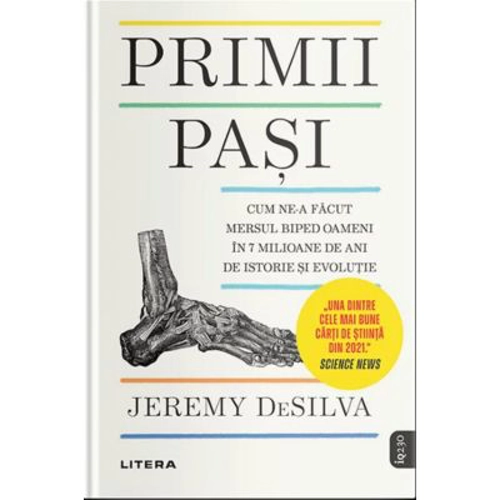 CASTIGATOR AL PREMIULUI HOWELL PENTRU CARTE DIN PARTEA ASOCIATIEI AMERICANE DE ANTROPOLOGIE Imbinand istoria, stiinta si cultura, DeSilva ne spune o poveste evolutiva uimitoare si extrem de captivanta ce exploreaza modul in care mersul biped le-a permis oamenilor sa devina specia dominanta a planetei. Oamenii sunt singurele mamifere care merg in doua picioare, un mod de deplasare cunoscut sub numele de mers biped. Ne straduim sa fim cetateni cinstiti, sa ii onoram pe cei care au ramas cu capul sus si mandri si sa luam atitudine impotriva nedreptatilor. Calcam pe urmele celorlalti si sarbatorim clipele cand un copil incepe sa faca primii pasi. Dar de ce si cum, mai exact, am facut primii pasi? Si cu ce pret? Mersul biped are dezavantajele sale: nasterea este mai dificila si mai periculoasa, viteza noastra de alergare este mult mai mica decat in cazul altor animale si suferim de o varietate de afectiuni, de la hernii la probleme ale sinusurilor. In Primii pasi, paleoantropologul Jeremy DeSilva analizeaza cat de neobisnuita si de extraordinara este aceasta abilitate aparent comuna. O calatorie de sapte milioane de ani pana la originile umane, Primii pasi arata cum mersul biped a fost o poarta catre multe dintre celelalte atribute care ne fac oameni – de la abilitatile tehnologice la setea de explorare si utilizarea limbajului – si poate a pus bazele trasaturilor speciei noastre de compasiune, de empatie si de altruism. Mergand din laboratoare de psihologia dezvoltarii in situri de fosile stravechi din Africa si Eurasia, DeSilva aduce la viata aventura noastra ca fiinta bipeda. Aprofundand povestea trecutului nostru si noile descoperiri care rescriu intelegerea despre evolutia umana, Primii pasi analizeaza modul in care mersul biped ne-a ajutat sa fim mai presus de toate speciile de pe aceasta planeta. „DeSilva este un companion genial in plimbarea noastra catre originile mersului biped.“ New York Times Book Review „DeSilva are un dar special de a identifica observatiile importante, dar adesea trecute cu vederea.“ Library Journal „DeSilva face o demonstratie stiintifica solida, folosindu-si experienta de istoric in evolutia oamenilor si a maimutelor antropoide.“ Kirkus Reviews „O plimbare de placere prin istoria mersului biped.“ Publishers Weekly „Nu ar trebui sa fie surprinzator ca mersul pe jos conteaza. Dar ceea ce ii va surprinde pe majoritatea cititorilor este cum si de ce. DeSilva ne poarta intr-o calatorie extraordinara, distractiva si profunda din punct de vedere stiintific prin istorie, anatomie si evolutie, pentru a ilustra o poveste formidabila despre cum un anumit mod de deplasare ne-a facut una dintre cele mai minunate, periculoase si fascinante specii de pe Pamant.“ Agustín Fuentes, profesor de antropologie, Universitatea Princeton, si autorul cartii Why We Believe: Evolution and the Human Way of Being JEREMY DeSILVA este antropolog la Dartmouth College si face parte din echipa de cercetare care a descoperit si a descris doi membri stravechi ai arborelui genealogic uman – Australopithecus sediba si Homo naledi. A studiat cimpanzeii salbatici din vestul Ugandei si fosilele umane stravechi in muzee din Africa de Est si de Sud. Din 1998 pana in 2003 a lucrat ca profesor la Muzeul de Stiinta din Boston. Este pasionat in continuare de educatia stiintifica si calatoreste prin New England, tinand prelegeri despre evolutia umana. El si sotia sa Erin locuiesc in Norwich, Vermont, impreuna cu gemenii lor, Ben si Josie.
