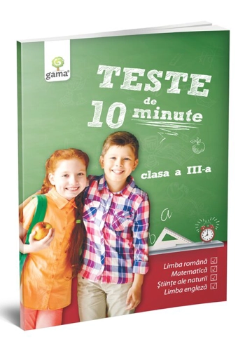 Caietul Teste de 10 minute. Clasa a III-a urmărește exersarea noțiunilor învățate și evaluarea cunoștințelor dobândite la orele de matematică și științe ale naturii, limbă și comunicare și limbă engleză. Pentru fiecare test există câte un barem de punctaj, iar răspunsurile la teste se regăsesc la finalul caietului.
