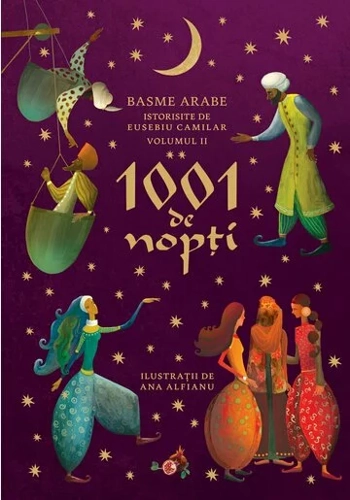 1001 de nopti - Volumul II. Basme arabe istorisite de Eusebiu Camilar si ilustratii de Ana Alfianu Putine carti s-au bucurat vreodata de o faima mai mare decat ,,1001 de nopti'', un adevarat triumf al imaginatiei omenesti! Publicata la mijlocul secolului trecut, aceasta prima adaptare romaneasca pentru copii a fermecat pentru totdeauna generatii de tineri cititori si, fara indoiala, va continua sa o faca multa vreme acum incolo. ,,De la Arabia la Samarkand, de la Damasc la India, pe marile drumuri ale caravanelor si generatiilor, basmele Seherazadei s-au rostit la seraiuri de mari sultani si-n pustie, la focuri de popas vremelnice.'' — Eusebiu Camilar