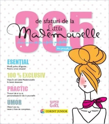Viaţa în stil Mademoiselle în benzi desenate Această carte se adresează fetelor cu vârstă peste 12 ani care pot descoperi o serie de lucruri interesante care să le facă super girls: Să afli dacă ești cu adevărat shoe addict! Să fii de neînvins în tendința preppy Să reușești în ritualul “înfrumusețării pielii” Să mănânci bine și echilibrat Să dai jos 5 kile și ceva în mai puțin de 5 minute Să afli dacă ești mai degrabă struţ, puicuță sau tigroaică. Să înțelegi ce vrea să spună un băiat când îți zice… Să afli care este cea mai bună prietenă a ta V-am convins? Atunci ai 365 de zile cu 365 de sfaturi, toate de la Little Madmoiselle. Să vă fie de folos!