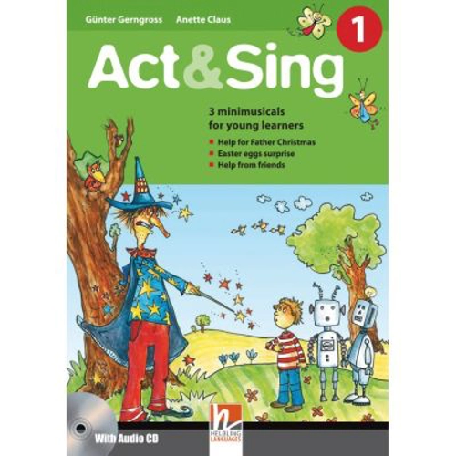 Act & Sing is a 2-volume primary teacher’s resource with a set of mini-musical plays to act out and sing in class. Each volume includes three fun musical plays in easy English, to promote multisensory learning and help young learners remember and pronounce new words and phrases. The book also contains full teaching and performing notes, scores, scripts and photocopiable pages with lyrics, picture dictionaries and masks. Plus an Audio CD with full musical accompaniment, instrumental versions and a reading of each play. Act & Sing 1 includes: Help for Father Christmas Easter eggs surprise Help from friends