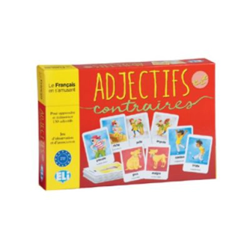 Adjectifs et contraires est un jeu de cartes très simple, utile et agréable, basé sur la correspondance illustrée d’adjectifs avec leurs opposés. Le jeu permet aux élèves d'apprendre, de mémoriser et de pratiquer 130 adjectifs couramment utilisés d'une manière amusante et concrète. La boîte contient: 130 illustrations d’adjectifs, une carte Joker et une carte surprise, le livret d'instructions fournit des suggestions pour un large éventail de jeux et d'activités à faire en classe ou à la maison avec des amis.