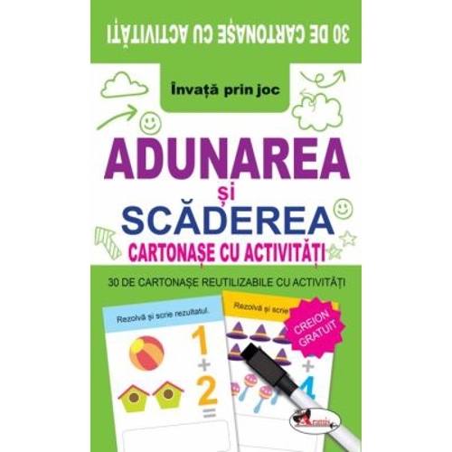 30 de cartonase reutilizabile cu activitati, insotite de un creion gratuit, care vin in sprijinul invatarii timpurii. Imaginile atractive vor spori interesul copiilor pentru invatarea primelor operatii matematice.