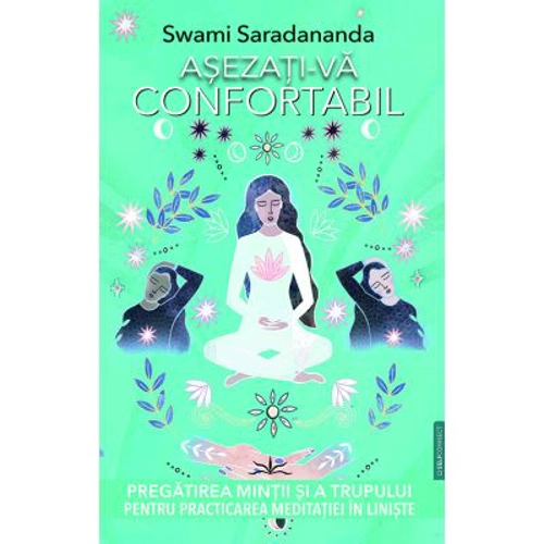 Cartea leaga laolalta yoga, traiul constientizat si meditatia. O excelenta carte in care toate acestea „se incruciseaza" si care va fi pe placul persoanelor cu diverse abordari in ceea ce priveste spiritualitatea. Include pozitii si exercitii de respiratie care ajuta la eliminarea disconfortului, alaturi de sfaturi pentru dieta si stil de viata care sa ajute la calmarea si imbuna tatirea puterii de concentrare. Practicarea meditatiei poate suferi blocaje din cauza durerilor resimtite in timpul sederii. Acest lucru duce la instaurarea unei agitatii la nivelul mintii, ajungand pana la senzatia de „a nu medita bine". Asezati-va confortabil exploreaza problemele fizice care pot aparea in timpul sederii, de la dureri la nivelul genunchilor la supraincordarea tendoanelor. Swami Saradananda ne arata cum pregatirea pentru yoga, exercitiile de respiratie si adaptarea pozitiilor ne pot ajuta la intarirea trupului pentru o meditatie sustinuta pe perioade mai lungi de timp. Aceasta ne invita sa intelegem felul in care mintea ne poate fugi cu usurinta la alte lucruri, precum un catel, dar si ca disconfortul fizic poate fi adesea o distragere neobservata a atentiei. Aceasta este singura carte care se concentreaza asupra aspectului fizic al practicarii meditatiei in mod oficial. Ajuta la pregatirea trupului pentru o meditatie constientizata, astfel incat mintea si trupul sa functioneze in sincron. Este un ghid de referinta extrem de valoros pentru elevii care invata constientizare, yoga, budism, dar si traditii New Age. Cartea aceasta este impartita in 8 capitole, printre care: Depasirea obsta colelor in crearea unei rutine de meditatie; Arta de a sta pentru a medita; Intinderi/pozitii yoga care sa te ajute sa stai confortabil; Exercitii de respiratie (pranayama); Dieta si stil de viata; Ridica-te de pe perna si iesi in lume! Continand o serie de ilustratii minunate la interior, aceasta carte reprezinta ghidul fundamental catre pregatirea pentru meditatie. SWAMI SARADANANDA este o profesoara de yoga si meditatie cunoscuta la nivel international, care prezinta o abordare practica si accesibila pentru dobandirea sanatatii si a pacii interioare. Fosta eleva a lui Swami Vishnu devananda, ea semneaza numeroase carti, printre care Chakra Meditation, The Power of Breath si The Essential Guide to Chakras. Dupa 30 de ani de activitate ca profesor senior in cadrul Centrelor Internationale Sivananda Yoga Vedanta din New York, Londra si Delhi, a urmat o perioada intensa de practica personala in Muntii Himalaya. Stabilita in prezent in Londra, preda yoga si meditatia la nivel mondial si realizeaza pelerinaje regulate in India. In ultimii ani, multe dintre cursurile si atelierele ei s-au bazat pe lucrul cu mudrele, observand impactul pozitiv si profund al acestor gesturi subtile ale mainii asupra vietii oamenilor.