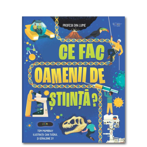 Ce fac oamenii de stiinta? este una dintre cartile din colectia interactiva Usborne de carti pentru copii. Cartea este special facuta pentru cei mici sa invete si sa descopere lumea prin joaca. Profesii din lume. Fa cunostinta cu extraordinara varietate de cercetatori stiintifici care exploreaza tot ce este pe lume, de la viata de pe Pamant la universul nemarginit. Vezi cu ce se ocupa oamenii de stiinta – si afla cum ai putea sa devii si tu cercetator stiintific. Cartea Ce fac oamenii de stiinta? are: • Explorarea stiintei: cartea ofera o introducere captivanta in lumea stiintei, prezentand o varietate larga de cercetatori stiintifici care studiaza de la fenomenele terestre pana la cele cosmice • Educatie pentru copii: destinata copiilor cu varsta intre 3 si 11 ani, cartea este proiectata pentru a stimula curiozitatea naturala a celor mici • Inspiratie pentru viitorii oameni de stiinta: pe langa faptul ca ofera cunostinte de baza despre stiinta, cartea isi propune sa inspire tinerii cititori sa urmeze o cariera in domeniul stiintific Colectia Usborne este renumita pentru calitatea si varietatea sa, oferind o gama larga de titluri pentru copii de toate varstele si interesele. Iata cateva aspecte care disting cartile Usborne: Calitatea continutului: cartile sunt de inalta calitate atat pentru informatii, cat si pentru ilustratii. Diversitatea tematica: colectia Usborne acopera o gama larga de subiecte, de la carti pentru bebelusi si prescolari, pana la carti de fictiune, carti educationale si enciclopedii pentru copii mai mari. Fiecare carte este adaptata pentru a raspunde intereselor si nevoilor diferite ale copiilor de diferite varste si interese. Inovatie si elemente interactive: Usborne se evidentiaza prin abordari noi si creative in prezentarea informatiilor si a continutului. De exemplu, unele carti pot include elemente interactive, cum ar fi: ferestre glisante, abtibilduri, puzzle-uri sau alte activitati care sa incurajeze implicarea activa a copiilor. Adaptate varstei si usor de utilizat: cartile sunt adaptate pentru a raspunde nevoilor diferitelor categorii de varsta si pentru a sprijini dezvoltarea abilitatilor lor cognitive, lingvistice si artistice intr-un mod distractiv si placut. Educative: Usborne are o echipa dedicata de autori, editori si consultanti educationali care lucreaza impreuna pentru a asigura ca cartile lor respecta standardele educationale si ofera informatii precise si de incredere, adaptate nivelului de intelegere al copiilor.