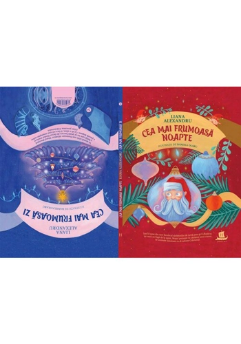 Ilustratii de Daniela Olaru O carte frumoasa ca ziua de Craciun, cu doua coperte, doua inceputuri si doua povesti care se intalnesc la mijlocul volumului. Prima poveste, Cea mai frumoasa noapte, o legenda pentru animalele fabuloase, se petrece chiar in zilele noastre, intr-o lume fara zapada, in care copiii nu se mai joaca cu bulgari, ci in retea, iar farmecul sarbatorilor de iarna a disparut odata cu multe minuni ale naturii. Din aceasta pricina, Mosul porneste prin lume in cautarea unui convoi de animale fabuloase care sa ia parte la un spectacol magic si sa salveze Craciunul. A doua poveste, Cea mai frumoasa zi, o legenda pentru Merry Christmas, se petrece ajunul celei mai frumoase sarbatori, cand Mosul descopera o fetita care nu se poate bucura de daruri pentru ca nu o are alaturi pe mama, plecata departe, in alta tara. Ca sa o aline, ii face cel mai neasteptat cadou: chiar povestea Craciunului. Doua legende moderne in care oamenii si animalele se ajuta reciproc pentru a putea reinvia „magia alba“ a zapezilor ce umpleau de farmec sarbatorile de odinioara.