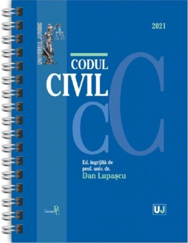Lucrarea Codul civil 2021 (ediție spiralată), îngrijită de prof. univ. dr. Dan Lupașcu, tipărită pe hârtie albă de calitate superioară, cuprinde Codul civil (Legea nr. 287/2009), actualizat (ianuarie 2021), articolele Codului fiind însoțite, acolo unde este cazul, de: dispoziții tranzitorii și de aplicare, dispoziții conexe, extrase din Constituția României, decizii CNA, decizii ale Curții Constituționale, recursuri în interesul legii și hotărâri prealabile – necesare unei depline înțelegeri a reglementării. Indexul plasat la finalul Codului facilitează utilizarea acestuia, indicând sediul materiei pentru diverse instituții importante în domeniul dreptului civil și asigurând o căutare rapidă a cuvintelor-cheie aferente. Lucrarea Codul civil 2021 (ediție spiralată) este destinată nu doar practicienilor și studenților, ci și teoreticienilor interesați de acest domeniu. Alte titluri pentru DanLupaşcu (ingrijita-de): Codul civil și legislație conexă 2023. Ediție PREMIUM (2023) , Codul de procedura civilă: ianuarie 2024 (2024) , Codul civil. Legislație consolidată și index (septembrie 2023) (2023) , Codul de procedura civilă: septembrie 2023 (2023) , Codul civil. Legislație consolidată și index (mai 2023) (2023) , Codul civil și Codul de procedură civilă (octombrie 2023) (2023) , Codul civil și Codul de procedură civilă: martie 2023 (2023) , Codul de procedură civilă Septembrie 2023 (ediție spiralată) (2023) , Codul de procedură civilă ianuarie 2023 (ediție spiralată) (2023) , Codul civil. Ediția a 9-a actualizată la 15 mai 2023 (2023) ,