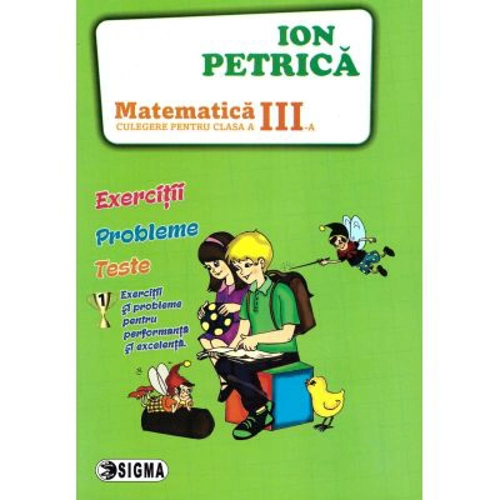 Exerseaza matematica alaturi de un instrument foarte util de invatare! Culegerea de matematica pentru clasa a III-a de Ion Petrica poate fi folosita alaturi de manualele scolare actuale pe care le completeaza, contribuind la consolidarea cunostintelor elevului. Culegerea contine o gama variata de: exercitii, teste recapitulative, sectiuni de invatare prin joc, un bogat material iconografic ce ajuta la gasirea solutiilor si care faciliteaza procesul de invatare. In culegerile cunoscutului profesor se constata legatura acestei discipline cu viata si se incurajeaza rezolvarea prin exercitii si probleme a unor situatii concrete de viata.