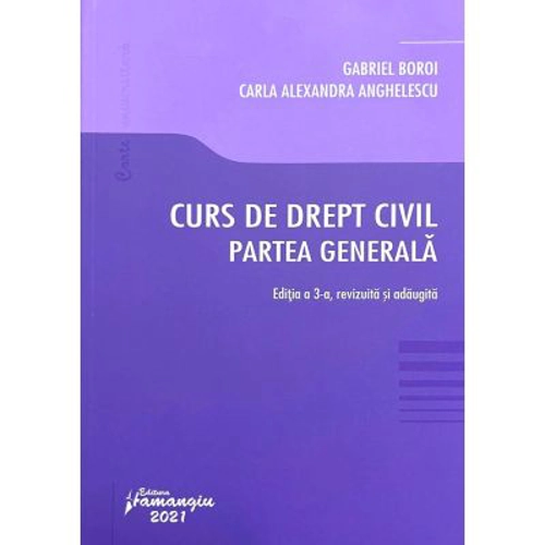 Pe 1 octombrie 2021, se vor implini zece ani de la intrarea in vigoare a noului Cod civil roman. Initial, pentru acest moment, aveam in vedere publicarea unei lucrari mai ample, la acelasi nivel de complexitate ca si mai vechea noastra carte Drept civil. Partea generala. Persoanele, scrisa sub imperiul Codului civil de la 1865. Finalizarea intregului proiect va mai dura, probabil, inca un an, motiv pentru care am acceptat propunerea Editurii Hamangiu de a publica materia analizata pana in prezent – Partea generala sub forma unei noi editii, revizuite si adaugite, a Cursului de drept civil. Partea generala. Publicat initial in noiembrie 2011 – fiind, de altfel, si primul curs de drept civil tiparit dupa intrarea in vigoare a noului Cod civil – si reeditat apoi in octombrie 2012, Cursul de drept civil. Partea generala s-a bucurat de un succes constant si oarecum neasteptat, fata de proiectiile noastre la vremea respectiva. Cartea continua sa fie solicitata in cateva mii de exemplare anual, fapt care ne-a convins de utilitatea si importanta abordarii clare si succinte a materiei, mai ales pentru studentii de anul I, care iau prima data contact cu substanta dreptului civil. Totusi, pe langa analiza modificarilor legislative intervenite in ultimii 10 ani, noua editie cuprinde numeroase explicatii si exemple, utile studentilor in procesul de invatare. De asemenea, este completata cu spete recente din practica judiciara si cu trimiteri la deciziile obligatorii pronuntate de Inalta Curte de Casatie si Justitie si Curtea Constitutionala, relevante pentru institutiile studiate. Am pastrat in finalul cartii si anexa cu testele tip grile si mini-spete, necesare celor care se pregatesc pentru examene si doresc sa-si verifice cunostintele, revizuind testele existente si adaugand peste 100 de teste noi. Acest mod de tratare a materiei are in vedere o dubla utilitate: cursul este conceput, desigur, pentru studenti, insa exemplele practice, culese din toate institutiile noului Cod civil, jurisprudenta selectata, discutiile pe marginea unor texte mai putin clare ale codului si propunerile pe care le facem pentru aplicarea in practica a acestor texte, precum si corelatiile cu legea procesuala civila in vigoare sunt, de fapt, gandite si scrise aici in primul rand pentru practicieni. Prof. univ. dr. Gabriel BOROI