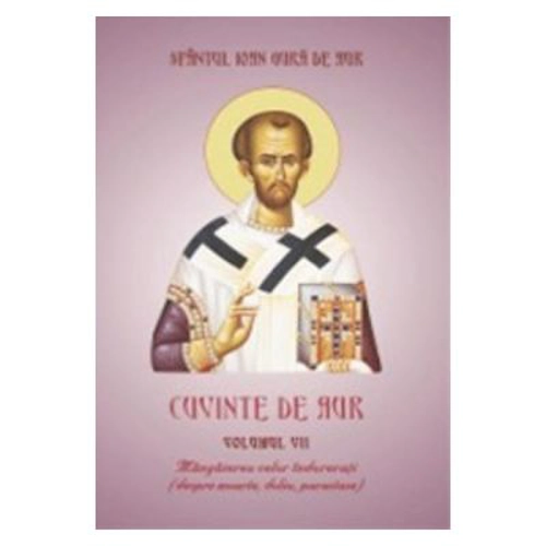 In textele volumului de fata, Sfantul Ioan Gura de Aur ne dezvaluie care este moartea adevarata si moartea falsa. Mort cu adevarat nu este cel care sufera moarte biologica, pentru ca moartea aceasta are doar denumirea de moarte. Hristos, prin moartea Sa, a biruit moartea, iar diavolul, prin arma cu care credea ca-L va birui pe Hristos, a suferit propria pierzanie. Cand este vorba despre omul virtuos, atunci moartea este caracterizata drept „cinstita”, in timp ce moartea celor pacatosi este definita drept „vicleana.” Prin moarte, dreptul se muta acolo unde va primi plata ostenelilor sale, in timp ce pacatosul se opreste din savarsirea faptelor sale pacatoase. Sfantul Ioan Gura de Aur, dascalul universal al Bisericii noastre, ca un „anatomist” desavarsit al sufletului omenesc, nu opreste doliul. „Nu opresc tanguirea”, intareste Sfantul. „Plangi si tu, asa cum a plans Domnul Insusi pentru prietenul Sau, Lazar, cu bunacuviinta si gravitate, nu ca unul care nu crede in Inviere”. Ceea ce aduce multa mangaiere celor indoliati sunt parastasele care au fost randuite de catre Biserica din vremurile cele mai vechi, cunoscand, conform marturisirii Sfantului, castigul sufletului din aducerea Jertfei celei fara de sange, dar si din milosteniile care se fac pentru cei adormiti.