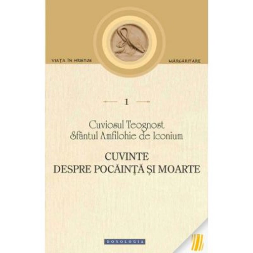 Cuvinte despre pocainta si moarte - Cuviosul Teognost, Sfantul Amfilohie de Iconium Traducere din limba greaca veche de Laura Enache. Editia este coordonata si ingrijita de pr. Dragos Bahrim. Volumul deschide seria Margaritare a colectiei Viata in Hristos si contine doua foarte frumoase Cuvinte despre pocainta si moarte, atribuite in traditia manuscrisa Sfantului Amfilohie de Iconium, prelucrate insa si transmise prin filtrul propriu, in secolul al XIII-lea, de Cuviosul Teognost, autor cunoscut deja din Filocalie. Acesta le-a inclus intr-un voluminos florilegiu intitulat Tezaurul, destinat educatiei unui tanar print bizantin. Cele doua texte reprezinta capitolele XV si XVI ale Tezaurului, lucrare ce va fi publicata integral la Editura Doxologia. „Pentru ce te temi de moarte? Spune-mi mie. Fiindca ea te scoate indata din hartuielile vietii si din tulburarile ei si te trimite la viata cea netulburata. Pentru ce-l plangi pe cel plecat din valtoarea celor de aici catre limanul cel linistit, unde si tu de vei duce peste putina vreme? Pacatos era? Bucura-te, fiindca i s-au taiat lui cele ale pacatului si s-a oprit prin moarte faptul de a pacatui, si slaveste-L pe Cel care l-a luat mai inainte de a se afunda in adancul unor si mai mari rele. Dar poate era drept? Inca si mai mult bucura-te, multumind Domnului, Celui ce si-a luat propria comoara spre odihna vesnica. Numai pentru pacat plangi si varsa lacrimi. Caci acesta este moartea sufletului nemuritor, care a innegrit si a manjit frumusetea cea dupa chip. Pentru pacat orice lacrima sa curga, si sa nu inceteze sa trimita suspin din adancul inimii.”