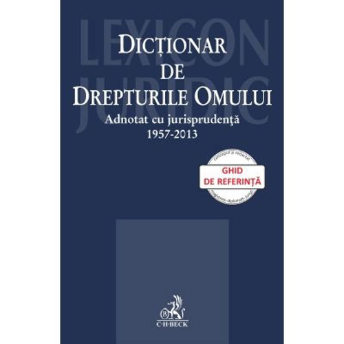 Dictionarul de Drepturile Omului reprezinta o lucrare de baza pentru insusirea terminologiei, principiilor, dispozitiilor si a mecanismelor Conventiei europene a drepturilor omului, prin dubla sa natura, teoretica si practica. Conceput si redactat de profesionisti ai dreptului, magistrati si diplomati, aceasta lucrare reprezinta un ghid de referinta pentru toti cei interesati de protectia europeana a drepturilor omului, deopotriva magistrati, avocati, notari, executori judecatoresti, profesori si studenti, dar si justitiabili, atrasi de mirajul Curtii Europene a Drepturilor Omului, considerata nu de putine ori drept singura cale „serioasa” pentru solutionarea unui litigiu. Dictionarul cuprinde 153 de termeni si se remarca prin: - bogatia explicatiilor care insotesc termenii - abordarea limpede a conceptelor - referirea ampla la jurisprudenta CEDO (1957-2013) - suport bibliografic bogat - corelatii legislative - adagii latinesti Colectivul de autori: 1. Dana Cristina Bunea – procuror Parchetul de pe langa Curtea de Apel Bucuresti 2. Cornel Gabriel Caian – judecator detasat la Agentul Guvernamental al Romaniei pentru CEDO 3. Irina Cambrea – judecator detasat la Agentul Guvernamental al Romaniei pentru CEDO 4. Dragos-Alin Calin – judecator Curtea de Apel Bucuresti 5. Roxana-Maria Calin – judecator Tribunalul Bucuresti 6. Victor Horia Dimitrie Constantinescu – judecator Judecatoria Alexandria 7. Ionut Militaru – judecator Tribunalul Bucuresti 8. Madalina Ioana Morariu – diplomat Ministerul Afacerilor Externe 9. Geanina Munteanu – jurist specializat in drepturile omului, Ministerul Afacerilor Externe 10. Irina Alexandra Neagu – judecator Tribunalul Bucuresti 11. Ileana-Gabriela Popa – judecator detasat la Agentul Guvernamental al Romaniei pentru CEDO 12. Razvan-Horatiu Radu – Subsecretar de stat Ministerul Afacerilor Externe, Agent al Guvernului pentru CJUE 13. Mihaela Vasiescu – judecator Curtea de Apel Targu-Mures