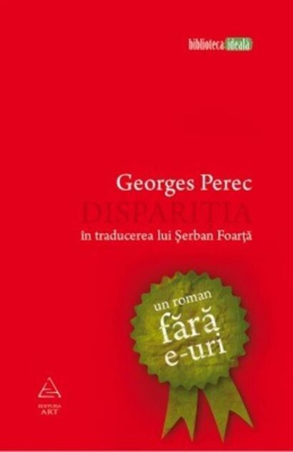 Volum premiat la categoria "Cărţile lunii martie" în 2011 de revista Orizont O carte-experiment, din care litera e lipseşte cu desăvârşire. Un roman fără precedent, în premieră pentru piaţa editorială românească, de la un maestru al provocărilor literare şi un expert în traduceri aparent imposibile. Scris în 1969 de Georges Perec (1936-1982), după regulile Oulipo, celebrul „subcomitet” al Colegiului de Patafizică, romanul Dispariţia este, cât se poate de literal, o carte fără e-uri. Din cele peste trei sute de pagini ale cărţii lipseşte cu desăvârşire, exceptând numele autorului, cea mai frecvent folosită literă a limbii franceze, confirmând încă o dată apetenţa lui Perec pentru alchimii lingvistice şi contorsionisme formale. Lipogramatica, de altfel, a fost una dintre artele practicate riguros de autorul vomului Viaţa: manual de întrebuinţare, premiat în 1978 cu Médicis; astfel, dacă în Dispariţia litera e lipseşte, în 1972 publica Les revenentes, în care e-ul este singura vocală folosită. Dispariţia, tradusă în peste zece limbi, de fiecare dată respectând convenţia literei lipsă, este o carte-hibrid, ca mai toate specimenele literare ieşite din laboratorul Perec, artist care, pe lângă scris, a testat şi cinematografia experimentală. Parodie cu accente noir, întorsături de situaţie şi echilibristică de stil, toate acestea sunt dublate de straturi subtile în care este pusă voalat în discuţie însăşi formula textului şi constrângerile lipogramatice. Tradus în limba română de Şerban Foarţă, jucător „de categoerie grea” când vine vorba de experimente imposibile la prima vedere, romanul Dispariţia este, de la primul la ultimul rând, nu doar o provocare marca Perec, ci şi o demonstraţie ca la carte despre îmblânzirea limbii române. Alte titluri pentru GeorgesPerec (autor): Viața mod de întrebuințare (2024) , W sau amintirea copilăriei (2024) , Alte titluri pentru ŞerbanFoarţă (traducator): Meşteşugul bunei pârţâieli (2023) , Prințese date uitării sau necunoscute (2023) , Seminţe de cabane (2013) , O sută de mii de miliarde de poeme (2014) , Tărâmul pustiit și alte poeme 1909‒1962 (2023) ,
