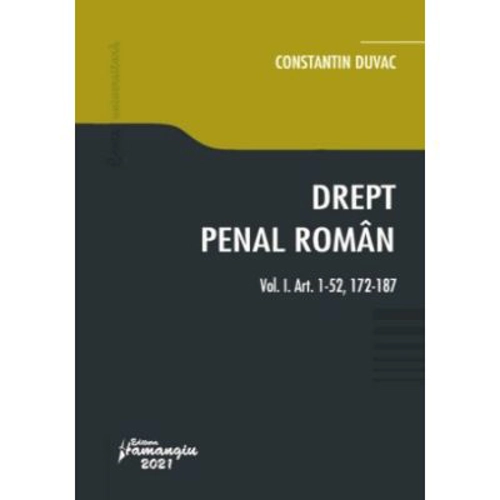 Lucrarea Drept penal roman, structurata in patru volume (vol. I si II – partea generala, vol. III si IV – partea speciala) ofera o cuprinzatoare analiza teoretica si practica a tuturor institutiilor specifice dreptului penal, atat partea generala, cat si partea speciala, in reglementarea Codului penal din 2014, cu toate modificarile la zi. Cartea este adresata in primul rand studentilor facultatilor de drept, aflati la inceput de drum in studierea normelor penale si in descifrarea stiintei dreptului penal, insa ea poate reprezenta un instrument util si pentru teoreticienii si practicienii dreptului. Volumul I. Art. 1-52 si 172-187 din Codul penal (Titlurile I, II si X ale Partii generale – legea penala si limitele ei de aplicare, infractiunea, respectiv, intelesul unor termeni sau expresii in legea penala) cuprinde o parte introductiva a dreptului penal, in care au fost plasate explicatiile relative la: dreptul penal, ca ramura a dreptului; principalele scoli si curente de politica penala; perspectiva istorica asupra dreptului penal roman; stiinta dreptului penal din Romania; izvoarele dreptului penal roman; normele juridice penale; interpretarea legii penale; concursul de norme penale (texte) si intelesul unor termeni sau expresii in legea penala. Analiza continua cu examinarea aprofundata a dispozitiilor art. 1-52 si art. 172-187 din Codul penal. Explicatiile teoretice sunt completate cu exemple si extrase relevante din jurisprudenta Curtii Constitutionale si a instantelor judecatoresti, precum si din deciziile Curtii Europene a Drepturilor Omului si ale Curtii de Justitie a Uniunii Europene, incidente in materia dreptului penal. Nu in ultimul rand, o atentie deosebita este acordata studiului critic al normelor penale, in urma caruia au fost formulate sugestii de imbunatatire a textelor din partea generala a Codului penal si care ar putea servi drept sursa de inspiratie legiuitorului ori instantei supreme in procesul de unificare a practicii judiciare penale din Romania.