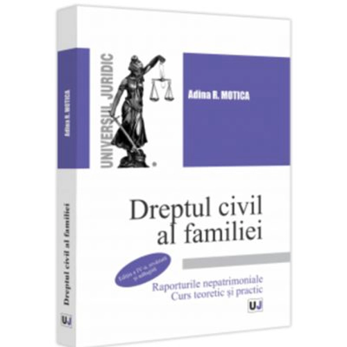 Scopul lucrarii de fata este acela de la facilita intelegerea si insusirea institutiilor de dreptul civil al familiei, pentru cei care se initiaza in acest fascinant domeniu al dreptului. Cuprinsul lucrarii In realizarea scopului lucrarii s-a incercat aducerea normelor de drept si a notiunilor juridice in viata de zi cu zi, acolo unde intalnim raporturile nepatrimoniale pe care viata de familie le genereaza, facandu-se trecerea de la cultura de specialitate la insasi punerea lor in practica, rezultatul fiind, speram noi, un instrument de lucru eficient, care abordeaza in paralel chestiunile teoretice si pe cele practice, intr-o maniera cat mai apropiata de ceea ce asteapta astazi studentii de la o astfel de lucrare. Puncte forte Lucrarea nu are un caracter pur teoretic, ci si un nuantat caracter practic – asa cum rezulta chiar din titlul sau –, prezentand, pe de o parte, unele „spete” create pentru a face legatura cu notiunile teoretice explicate, solicitand studentilor solutii concrete la probleme de drept pe care acestea le ridica, iar pe de alta parte, prin includerea unor solutii apreciate a fi mai semnificative din practica judiciara, mai noua sau mai veche, publicate sau nepublicate pana acum, spre a fi analizate si discutate cu studentii in dezbaterile seminariale. Pentru verificarea informatiilor asimilate, in cuprinsul lucrarii au fost incluse 350 de grile, precum si o serie de intrebari de verificare a cunostintelor, destinate fixarii notiunilor de drept prezentate. Publicul tinta Lucrarea se adreseaza studentilor, avocatilor, magistratilor, notarilor, doctoranzilor si, in general, tuturor celor interesati de materia dreptului civil al familiei. Despre autoare Adina R. Motica – conf. univ. dr., Facultatea de Drept, Universitatea de Vest din Timisoara; notar public in cadrul Camerei Notarilor Publici Timisoara.