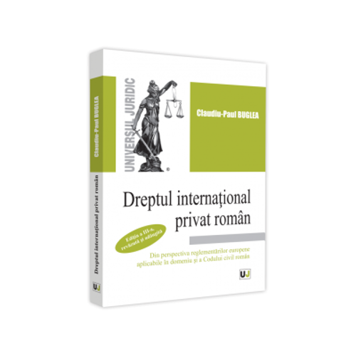Lucrarea „Dreptul international privat roman din perspectiva reglementarilor europene aplicabile in domeniu si a Codului civil roman, editia a III-a, revazuta si adaugita” are ca scop o prezentare a reglementarii de drept international privat roman oferita atat de Codul civil si Codul de procedura civila, cat si de regulamentele europene aplicabile in acest domeniu. Datorita faptului ca ea incearca o analiza a aspectelor ce tin de raporturile de drept privat cu element de extraneitate, dar si de cele ale procesului civil international, lucrarea se adreseaza atat studentilor sau masteranzilor in Drept, cat si practicienilor, putand reprezenta un instrument la indemana acestora, pe un taram interesant, cum este cel al dreptului international privat. Autorul acestei lucrari, domnul conferentiar doctor Claudiu-Paul Buglea, este cadru didactic al Facultatii de Drept a Universitatii din Bucuresti, fiind unul dintre titularii disciplinei Drept international privat, predata in aceasta facultate.