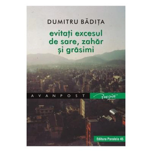 Evitati excesul de sare, zahar si grasimi - Dumitru Badita În acest volum, Dumitru Bădița se mișcă plin de suplețe șăgalnică prin istoria lumii de la Adam încoace fără un alt scop decât acela de a-i face pe cei care mai iau lucrurile prea în serios să se simtă, măcar pentru o perioadă, ambarasați.“ Octavian Perpelea