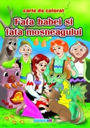 Carte de colorat cu povești, cu desene clare, și text cu corp mare, cu pagini color oferite ca exemplu, pentru ca cei mici să le poată citi, desluși și colora.