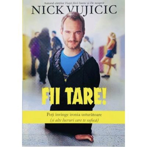 Poti invinge ironia usturatoare (si alte lucruri care te sufoca) Nicio persoana rau intentionata nu are dreptul sa defineasca cine esti. Fara maini, fara picioare si fara aparare, Nick Vujicic a devenit la un moment dat tinta batjocurilor si a ajuns sa simta pe propria-i piele cum e sa fii ironizat si umilit: esti tulburat, simti un nod in stomac, visele iti sunt tulburate si nu intrezaresti nicio speranta la orizont. Dar Nick Vujicic a invatat un lucru important, acela ca nimeni nu-l poate obliga sa faca jocul celor rautaciosi – si nici tu nu poti fi obligat. Pentru simplul fapt ca era „diferit“, Nick a fost supus intimidarilor de tot felul. Dar el a invatat cum sa se ridice deasupra rautatilor si sa le invinga. Fii tare! este mesajul lui de incurajare pentru tine, in care iti impartaseste strategii eficiente pentru construirea unui „sistem de aparare“ din interior spre exterior. Vei putea sa: Transformi ironiile intr-o buna motivatie (pe bune!) Creezi o zona de confort in tine insuti Stabilesti valori puternice pe care nicio persoana rau intentionata sa nu ti le poata zgudui Contracarezi vulgaritatile din mediul virtual Construiesti o temelie spirituala pe care sa poti sta tare impotriva batjocoritorilor Controlezi propriile emotii si reactii Vii in ajutorul celor care sunt ironizati Te lupti cu ironiile unor persoane rautacioase? Te asigur ca poti sa faci fata acestei provocari, pentru ca puterea ta asupra propriilor sentimente si a propriei vieti este cu mult mai mare decat ti-ai putea imagina! Intreaba-l pe Nick, barbatul fara maini si picioare, dar cu o „viata ridicol de buna“.