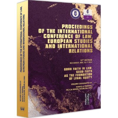 Starting from the Kantian categorical imperative, "act only according to that maxim whereby you can at the same time will that it should become a universal law", good faith represents a fundamental concept in law and is recognized in all areas of the legal world. It can be argued that good faith is an essential pillar in the legal system, promoting ethical conduct and strengthening trust in legal relationships. Aspects related to good faith are encountered in contract law, influencing their interpretation and execution, as well as in family law, where the principle of good faith can play a significant role in various situations, such as exercising parental authority or dividing common property. Parties are encouraged to act in the best interest of children and cooperate in resolving disputes. Good faith is also relevant in the area of exercising procedural obligations in civil or criminal procedural law. The mentioned aspects are just a few fragments of the research horizons generated by the proposed conference theme. Multiple topics from these thematic areas, as well as from areas such as labor law, transportation law, constitutional law, or international public law, will be analyzed in the selected scientific papers - current topics in research likely to attract the interest of both legal theorists and practitioners (lawyers, notaries, judges, judicial executors, legal counselors). Colectiv de autori: Prof. univ. dr. Iosif R. Urs, Prof. univ. dr. Smaranda Angheni, Prof. univ. dr. Constantin Adrian Stoica, Prof. univ. dr. Gabriela Alexandra Oanta, Prof. dr. Tetiana Drakokhrust, PhD. Nataliia Martsenko, Assistant Professor Dr Anto Sebastian, Dr. Oswaldo Pereira de Lima Junior, Agnieszka Biefi-Kacala, Assistant Professor Kishor Akshaya, Assistant Professor Singh Prabhpreet, Associate Professor Dr. Sonu Agarwal, Prof. univ. dr. Carmen-Silvia Paraschiv, Prof. univ. dr. Alexandru Boroi, Conf. univ. dr. Manuela Tabaras, Conf. univ. dr. Raluca-Andreea Trandafir, Conf. univ. dr. Ioana Maria Costea, Conf. univ. dr. Sebastian Spinei, Conf. univ. dr. Denisa Barbu, Conf. univ. dr. Monica Gheorghe, Conf. univ. dr. Claudiu Constantin Dinu, Conf. univ. dr. Carmen Palacean, Conf. univ. dr. Andreea Simona Uzlau, Conf. univ. dr. Madalina Dinu, Conf. univ. dr. Felicia Maxim, Conf. univ. dr. Adrian Milutin Truichici, Lect. univ. dr. Bogdan Virjan, Lect. univ. dr. Ioan Morariu, Lect. univ. dr. Mihaela Georgiana Iliescu, Lect. univ. dr. Iulia Elena Nistor, Lect. univ. dr. Carolina-Maria Nita, Lect. univ. dr. Monica Alina Axente, Lect. univ. dr. Mihaela Cristina Paul, Dr. Andrei Savescu, Presedinte ARDAE Raul Felix Hodos, Presedinte executiv ARDAE Alexandru Georgescu.