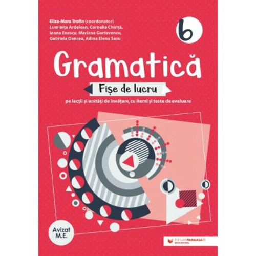 Avizat M. E. N. Gramatica. Fise de lucru pentru clasa a 6-a este o lucrare conceputa in conformitate cu noua programa pentru limba si literatura romana. Culegerea este utila elevilor, indiferent de manualul pentru care s-a optat la clasa. Este o lucrare complexa, dedicata in primul rand orelor de limba romana, al carei scop este dezvoltarea competentelor lingvistice ale elevilor, fiind utila deopotriva si profesorilor care pot selecta exercitii pentru fiecare lectie si pot evalua nivelul achizitiilor elevilor prin utilizarea testelor stadiale si sumative. Cartea poate fi utilizata si acasa, fiind un ghid nepretuit pentru parinti. Ii ajuta, de asemenea, pe elevi si in pregatirea pentru evaluarea nationala din clasa a 6-a si pentru olimpiadele scolare (OLLR, OLAV) deoarece propune si tipuri de itemi specifici acestor evaluari, itemi care nu sunt cuprinsi, de obicei, in manualele scolare.