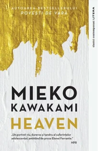 În Heaven, un băiat de paisprezece ani este supus bullyingului de către colegii săi, din cauză că are un defect de vedere. În loc să riposteze, el se resemnează și se retrage într-o suferință mută. Singura care înțelege prin ce trece este colega lui, Kojima, supusă și ea unor tratamente similare din partea propriilor călăi. Oferindu-și unul altuia incomensurabila alinare de care au nevoie în clipele grele prin care trec, cei doi tineri prieteni devin tot mai apropiați. Dar, în fond, care este natura unei prietenii născute din pură teroare? Scris cu o mână sigură, dar și cu multă tandrețe, plin de observații fine, intim și multistratificat, acest roman de o simplitate profundă este încă o dovadă uimitoare a talentului de necontestat al lui Mieko Kawakami, una dintre cele mai importante voci ale literaturii contemporane. Alte titluri pentru MiekoKawakami (autor): Îndrăgostiții de la miezul nopții (2023) , Povești de vară (2021) , Alte titluri pentru IolandaProdan (traducator): Prinţesa Bari (2023) , Vegetariana (2024) , Acuzaţia (2017) , Femeia minimarket (2018) , Disecție (2024) , Cartea albă (2024) , Gon, puiul de vulpe (2022) , Atunci când am fost fericiţi (2021) ,