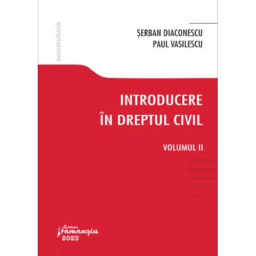 Lucrarea Introducere in dreptul civil. Volumul II este cel de-al doilea volum dintr-o opera care acopera intreaga problematica a disciplinei universitare numite Civilul I. Lucrarea este structurata in trei capitole, care realizeaza o analiza extinsa asupra institutiilor dreptului civil referitoare la actul civil, sistemul probatoriu si materia prescriptiei extinctive, completand astfel temele prezentate in primul volum. Primul capitol al lucrarii examineaza in detaliu institutia actului juridic civil, oferind o sinteza bogata a principalelor concepte conexe acestei institutii. Sunt avute in vedere clasificarile actelor civile, structura actului civil, forma si formalitatile acestuia, precum si modalitatile actului civil. Capitolul se incheie cu prezentarea ampla a institutiei nulitatii si a efectelor actului civil. Cel de-al doilea capitol prezinta notiunea de proba a actelor civile, analizand, pe rand, principalele mijloace de proba, de la inscrisurile autentice si cele sub semnatura privata, pana la proba testimoniala, prezumtii si cercetarea la fata locului. Ultimul capitol al lucrarii analizeaza una dintre institutiile fundamentale ale dreptului civil – prescriptia extinctiva. Sunt avute in vedere notiunea prescriptiei extinctive si raportul acesteia cu alte institutii ale dreptului civil, modalitatile de invocare a prescriptiei si de renuntare la prescriptie, domeniul de aplicare a prescriptiei extinctive, prin raportare la actiunile cu obiect patrimonial, la cele cu obiect nepatrimonial, precum si la actiunile imprescriptibile. In finalul capitolului, sunt analizate termenele de prescriptie, cursul prescriptiei extinctive, precum si institutia decaderii. Lucrarea Introducere in dreptul civil. Volumul II intregeste studiul partii generale a dreptului civil. Lucrarea ofera bazele esentiale pentru aprofundarea materiei dreptului civil, insa, prin modul in care este construita, prin expunerile ample ale doctrinei si dreptului comparat, precum si prin multiple exemple din practica judiciara, aceasta poate fi un veritabil instrument de lucru pentru practicienii dreptului. Actualizam astazi cercetarea inceputa cu mai bine de un deceniu in urma, tinand cont de schimbarile survenite in legile, doctrina si practica atasate materiei civile. Lucrarea nu se adreseaza insa exclusiv studentilor, pentru ca analiza infatisata poate fi valorificata inclusiv de profesionistii dreptului, oferindu-le repere, solutii si argumente in deznodarea unor chestiuni practice dezbatute. Efortul intelectual de a pune si rezolva probleme juridice este continuu si dificil; modificarile normative nu usureaza intotdeauna cercetarea, insa din cercetarile deja intreprinse si din solutiile deja propuse am desprins si analizat in paginile urmatoare elementele considerate esentiale. Intentia autorilor a fost si ramane sa ofere rationamente si temeiuri, solutii tehnice, fara sa ocoleasca aspectele spinoase deja aparute, toate in acord cu spiritul si litera dreptului privat. Convinsi suntem ca doar dezbaterea poate alimenta un spirit juridic critic, care sa imbogateasca analitic inventarul rigid al expresiilor de lege lata. Autorii Despre autori Paul VASILESCU este profesor la Facultatea de drept a Universitatii Babes-Bolyai din Cluj-Napoca. Serban DIACONESCU este conferentiar la Facultatea de drept a Universitatii Babes-Bolyai din Cluj-Napoca si avocat in Baroul Cluj.