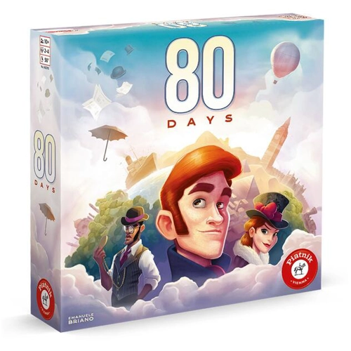 80 days - o călătorie plină de aventuri în jurul lumii, pe urmele lui Phileas Fog și ale lui Passepartout, celebrele personaje ale lui Jules Verne. Scopul acestui joc este de a călători în jurul lumii cât mai repede posibil, ajungând înapoi la Londra în cinci perioade și de a finaliza cât mai multe aventuri posibil, pe care le vei consemna în jurnalul tău de călătorie. Citești ziarul și afli știri din lume, călătorești cu trenul, vaporul sau alte mijloace mai puțin comune, faci cumpărături în bazarurile din orașele pe care le vizitezi, iar totul are un scop: să te întorci la Londra în timp util și să strângi pe drum cel mai multe puncte de victorie. Călătoriți și distrați-vă cu acest joc minunat! Număr de jucători: 2-4 Dimensiuni cutie: 29.5cm x 29.5cm x 7cm Atenție! Conține piese mici! Interzis copiilor copiilor sub 3 ani! Risc de sufocare!