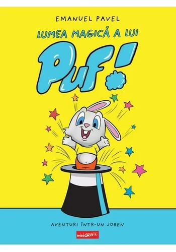 Aventuri intr-un joben LUMEA LUI PUF E PLINA DE CULOARE, VOIE BUNA SI MULTA, MULTA MAGIE lepurasul Puf nu se plictiseste niciodata, caci in fiecare zi are o gramada de lucruri de facut: se joaca, mananca inghetata, se balaceste in mare, coace placinte cu dovleac si uneori arbitreaza concursuri de alergat Alaturi de prietenii lui are parte de aventuri nastrusnice, la care esti invitat sa participi si tu, iar, in lipsa cuvintelor din carte, ilustratiile te imbie sa-ti folosesti imaginatia si sa dai glas povestilor. „Emanuel Pavel reuseste sa creeze unul dintre cele mai simpatice personaje din banda dese- nata romaneasca, un personaj memorabil, care merita sa stea alaturi de Mihaela, Pin-Pin sau Miaunel si Balanel, care au fermecat copilaria atator generatii. Acum este randul lui Puf." OCTAV UNGUREANU, coordonator RevistaCOMICS.ro, autor de benzi desenate „Pozitionandu-se ca un adevarat urmas al indragitelor artiste Livia Rusz si Felicia Avram, Emanuel Pavel inventeaza un personaj inedit pentru lumea BD romaneasca - iepurasul Puf. Adresandu-se copiilor prescolari - BD-urile sale sunt fara texte (dar cu multe onomatopee), autorul isi doreste ca, prin intermediul acestor mici poeme in imagini, sa starneasca interesul cititorilor sai, calatorind alaturi de ei in lumea magica a copilariei." DODO NITA, exeget al benzi desenate romanesti „Cei care-l cunosc deja pe Puf se vor bucura sa-i vada intamplarile adunate, in sfarsit, intr-un volum tiparit (pe care eu unul il astept de mult). Ceilalti, grabiti-va sa-l cunoasteti aveti doar de castigat. Si de zambit." ADRIAN BARBU, ilustrator, autor de benzi desenate