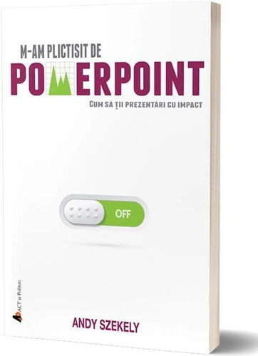 „Am scris această carte nu pentru că detest PowerPoint-ul, ci pentru că m-am plictisit de el, așa cum este astăzi folosit în 90% dintre sălile de conferință. Probabil că și tu ai această impresie, dacă te-am incitat cu tema cărții, așa că mă bucur să îți spun că în paginile ei vei găsi antidotul la plictiseala de slide-uri (și mult mai mult decât atât)! M-am plictisit de PowerPoint este cel mai practic text despre prezentările cu public pe care l-am scris până acum. Este un manual pentru pregătirea, livrarea și îmbunătățirea oricărei prezentări, indiferent că e vorba de mediul de business, de un speech într-o conferință sau de un toast.” Andy Szekely Alte titluri pentru AndySzekely (autor): Formula măiestriei (2019) , Cum mi-am schimbat viața în 4 zile (2024) ,