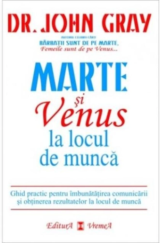 Conştientizând diferenţele şi punctele noastre tari, vom fi în posesia unor instrumente care vor îmbunătăţi comunicarea, lucrul în echipa şi cooperarea la toate nivelurile unei companii. Toată lumea ar avea doar de câştigat de pe urma relaţiilor bazate pe respect şi încredere între cele două sexe. Alte titluri pentru JohnGray (autor): Copiii sunt din Rai. Metode de educație pozitivă pentru creșterea unor copii cooperanţi, încrezători şi sufletişti (2014) , Marte şi Venus se ciocnesc (Vol.2) Echilibru, completare, armonie (2016) , Marte şi Venus se ciocnesc (Vol.1) Cum să faci pace cu sexul opus (2014) , The Soul of the Marionette : A Short Enquiry into Human Freedom (2018) , Lucrează cu mine (2020) , Marte şi Venus în dormitor (2020) , Marte şi Venus. 365 de sfaturi pentru a-ţi păstra dragostea vie (2020) , Marte şi Venus împreună pentru totdeauna (2020) , Bărbaţii sunt de pe Marte, femeile sunt de pe Venus (2013) , Cum să rămâi concentrat într-o lume hiperactivă (2020) ,