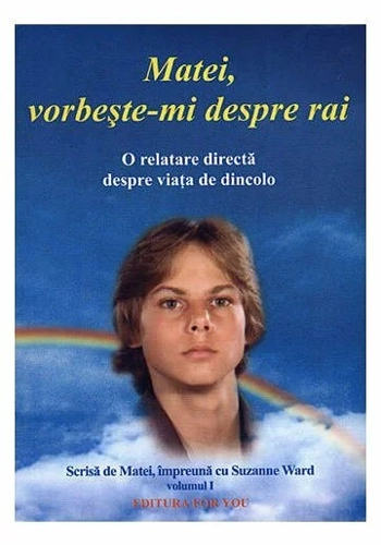 Matei, vorbeste-mi despre rai, de Suzanne Ward O relatare directa despre viata de dincolo. Impreuna cu Revelatii pentru o noua era (vol. 2), cele doua volume, publicate la editura For you, contin mesajul pe care doamna Suzanne Ward le-a primit de la fiul ei, Matei, care a murit de curand si care face o prezentare foarte detaliata a vietii de dupa moarte si a lumii de dincolo. Este cea mai exacta si amanuntita prezentare a acestui subiect atat de controversat - viata de dupa moarte, viata care se dovedeste a nu fi catusi de putin atat de inspaimantatoare cum ni s-a parut, poate, pana acum. Al doilea volum, Revelatii pentru o noua era, trateaza probleme globale ale omenirii, explicate de entitati superioare, prin Matei sau direct, iar comunicarile sunt transmise pana in ianuarie 2002. Multe lucruri inexplicabile ne sunt revelate, multe nelamuriri ne sunt clarificate, intr-un mod placut si inedit.