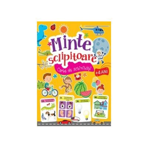 Invatarea poate fi un proces dificil. De ce nu am imbina atunci placutul cu utilul, jocul cu invatarea, creand copiilor posibilitatea de a acumula cunostinte distrandu-se? Cartea de activitati Minte sclipitoare + 4 ani contribuie prin exercitii atractive la atingerea acestui tel intr-un mod amuzant si antrenant pentru cei mici. Este structurata in pas cu capacitatea de intelegere si invatare a copiilor carora le este adresata. Tematica este diversa, acoperind toate domeniile adecvate varstei cititorilor ei. Ma joc, deci invat! Este o buna deviza pentru micii exploratori ai lumii acestei carti.