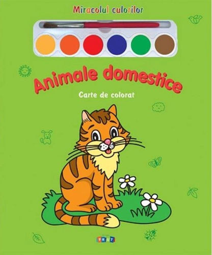 Miracolul culorilor. Animale domestice (carte de colorat + acuarelă + pensulă)