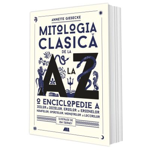 O splendida enciclopedie a zeilor si zeitelor, eroilor si eroinelor, nimfelor, spiritelor, monstrilor si locurilor din mitologia clasica Aceasta este una dintre cele mai valoroase lucrari de popularizare a culturii clasice aparute in ultimele decenii. In paginile sale, sunt prezentate intr-un stil fermecator peste 700 de personaje, creaturi si locuri fabuloase. Abordarea grafica si ilustratiile spectaculoase o transforma intr-un adevarat album de colectie. In scrierile autorilor antici apare un numar enorm de zei, eroi si monstri, dar si de locuri in care se petrec povestile lor. O parte considerabila a acestor repere ale mitologiei greco-romane se regaseste in catalogul intocmit de Annette Giesecke. Destinul lucrarii de fata se impleteste cu cel al volumului Mitologie: Povesti nemuritoare despre zei si eroi, semnat de Edith Hamilton si publicat, de asemenea, in limba romana de Editura ALL. Practic, Mitologia clasica de la A la Z prezinta in detaliu personajele si locurile care apar in cartea lui Edith Hamilton. Cele doua volume pot fi citite impreuna, pornind de la miturile repovestite de Hamilton si aprofundand apoi genealogiile personajelor, faptele lor si locurile in care au trait, asa cum sunt redate de Giesecke. Dar aceasta enciclopedie isi depaseste statutul de companion si poate functiona perfect si individual, ca un ghid de sine statator. Cititorii vor descoperi caracteristicile si istoricul reperelor mitologice, plus modul in care se reflecta acestea in literatura, muzica, arta si chiar in cultura pop. Punctele de interes sunt grupate in patru categorii principale: zei, oameni, monstri si locuri. Zeii si zeitele din Olimp, amazoanele, taberele din razboiul troian, spiritele care traiau in copaci si in ape, monstrii terifianti, creaturile jumatate om - jumatate animal, eroii neinfricati ca Hercule, Perseu sau Tezeu – cu totii se regasesc in antologia lui Giesecke. Autoarea surprinde fidel contextul epocilor in care au aparut aceste personaje si locuri, dar le interpreteaza si in cheie moderna. Datorita sistemului de trimiteri incrucisate pe care l-a creat, cititorul are acces la toate informatiile complete privind punctele de interes care se incadreaza in mai multe categorii. In acelasi timp, se stabilesc si echivalentele intre mitologia greaca si versiunea romana. Lucrarea este intregita de un glosar de surse antice si sublimata de cele 10 planse impresionante. Cele patru parti principale sunt: Zei, zeite, spirite si nimfe Eroi, eroine si oameni Monstri, minuni si creaturi jumatate om, jumatate animal Locuri si obiective importante