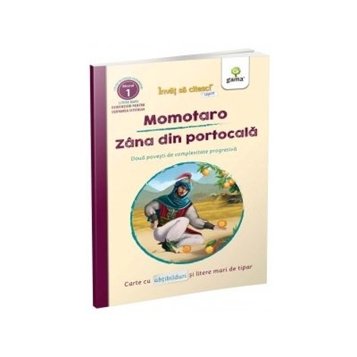 Va reusi Momotaro sa invinga capcaunii? Si cum descopera Ali zana din portocala? Copiii vor descoperi cu siguranta bucuria lecturii alaturi de personajele din aceste doua povesti minunate. In fiecare carte din colectia Invat sa citesc usor veti gasi doua povesti diferite, ambele scrise cu majuscule, dar cu nivel de complexitate diferit. La finalul lor exista intrebari de verificare a intelegerii textului, iar cartea contine autocolante. Prima poveste se adreseaza cititorilor incepatori, care deja nu mai citesc pe silabe, dar care au inca dificultati sa parcurga un text lung fara stimulente atragatoare. Prin urmare, in locul cuvintelor usor de ilustrat sunt pictograme, iar cuvintele de legatura si grupurile de litere sunt evidentiate. Din a doua poveste lipsesc pictogramele, dar majusculele si evidentierile au fost pastrate. In josul paginii sunt intrebari legate de text.
