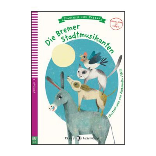 This is the story of a donkey who runs away to Bremen to play music in a band. On the road he meets other animals. Who does he meet? On their way they find a house. But who is in the house? Read the story and see! Vocabulary areas: animals, musical instruments, animal and instrument sounds, emotions Grammar and structures: Present tense Imperative Adjectives Interrogative pronouns Prepositions of time and place