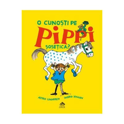 4-9 ani Pippi Sosetica este o fetita cu puteri nemaivazute si un chef de joaca fara margini, cunoscuta copiilor din lumea intreaga din cele trei romane dedicate ei pe care Astrid Lindgren le-a scris incepand din 1945. „O cunosti pe Pippi Sosetica?” este o carte ilustrata creata special de Astrid Lindgren, in colaborare cu ilustratoarea Ingrid Vang Nyman, cu intentia de a face cunoscut acest indragit personaj si copiilor mai mici, care inca nu pot citi singuri un roman, dar sunt dornici sa afle cine este extraordinara Pippi. Astrid Lindgren (1907–2002) este cea mai cunoscuta scriitoare suedeza de literatura pentru copii. Copilaria petrecuta la ferma parintilor, alaturi de fratele sau si de cele doua surori, dragostea cu care a fost inconjurata, aventurile copilaresti si jocurile au fost sursa inepuizabila de inspiratie pentru povestile si personajele sale. Astrid Lindgren a crescut printre carti si a fost toata viata o mare sustinatoare a lecturii in randul copiilor. „O copilarie fara carti nu este copilarie. E ca si cum ai fi izgonit din locul fermecat in care poti gasi bucuria in stare pura.” Cartile sale au fost traduse in zeci de limbi si au facut obiectul multor ecranizari. Dupa Fratii Grimm si Hans Christian Andersen, Astrid Lindgren este cel mai tradus autor de literatura pentru copii.