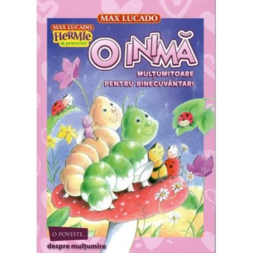MULTUMESTE-I LUI DUMNEZEU SI VEI FI FERICIT! O poveste... despre multumire Dragostea lui Dumnezeu este atat de mare si de necuprinsa, dar o poate intelege oricine, chiar si omiduta Hermie. In fiecare zi, in Gradina Ganganiilor, Hermie gaseste nenumarate ocazii si motive de a-I multumi lui Dumnezeu pentru binecuvantarile si darurile Sale. Astfel ca omiduta Hermie doreste sa-I declare dragostea sa lui Dumnezeu, ascultand de parinti, impartind cu bucurie din darurile sale prietenilor, bucurandu‑se de flori si soare, dar, mai ales, spunandu-I in rugaciune: „Multumesc, Doamne!“ Hermie este o omiduta mica, dar are o inima mare ce invata sa fie recunoscatoare.