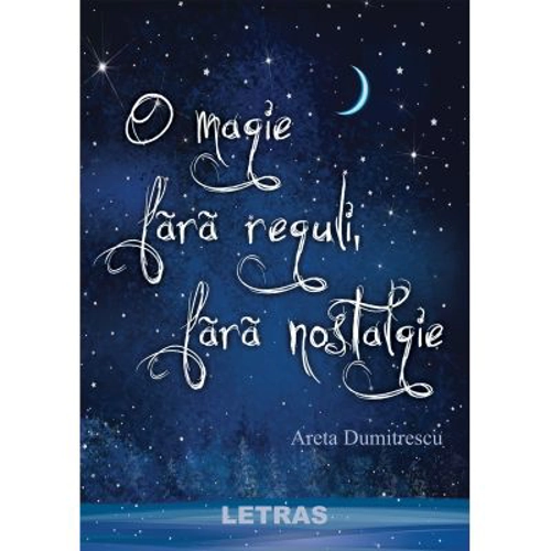 Cartea,, O magie fara reguli, fara nostalgie” aduna cu delicatete trei istorii romantice si fiecare dintre ele incepe cu timpul si locul in care s-au cunoscut: Serban cu Katrin, Seb cu Amelia si Alex cu Kassandra. Sunt trei perechi formate din spirite alese cu acelasi mod de gandire, care se iubesc cu pasiune. Dialogurile dintre ei sunt un ping-pong de fraze culese din libertatea sentimentelor reciproce, chiar si atunci cand momentele dificile le pun relatiile la incercare. Dar ca o magie fara reguli, fara nostalgie, puterea dragostei lor ii ajuta sa recapete timpul pierdut. Fiecare povestire se termina dupa cateva fraze de suspans, cu un sfarsit magic. Despre autoare: Cred ca dorinta de a scrie s-a nascut odata cu mine, in prima zi a lunii septembrie 1947. Am folosit farama de talent, amestecata cu multa fantezie, sa dau curs imaginatiei in cuvinte aranjate cu efecte minunate. Scriu ceea ce simt, ce adun in minte si imi ramane in suflet. Fiecare loc si fiecare intamplare sunt descrise dupa bunul meu plac, iar personajele fac parte din mine. Le inzestrez cu calitati pe care le doresc celor din jurul meu sau cu calitati pe care le detest in realitate. Nu inventez prea multe, pentru ca in scris dau libertate gandurilor si sentimentelor care isi gasesc linistea dupa ce ajung pe hartie.