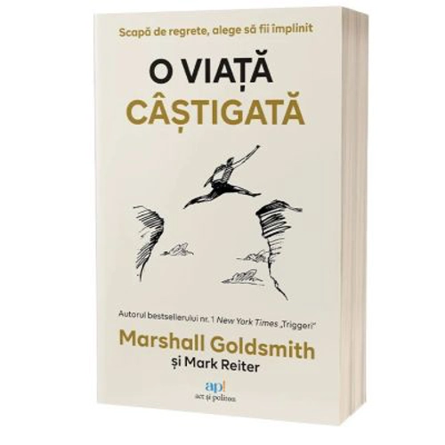 O viata castigata: Scapa de regrete, alege sa fii implinit / The Earned Life: Lose Regret, Choose Fulfillment de Marshall Goldsmith si Mark Reiter este cartea care isi propune sa te ajute sa traiesti o viata implinita. Pornind de la premisa ca viata este o axa neintrerupta care oscileaza intre Regret si Implinire si ca regretul este contraponderea deprimanta la gasirea implinirii, autorul te ghideaza sa eviti regretul si sa te bucuri de o viata implinita, sau, de ceea ce numeste el in aceasta carte, o viata „castigata”. Dr. Marshall Goldsmith este un coach renumit la nivel international in domeniul leadershipului si este inclus in Thinkers 50 Hall of Fame – una dintre cele mai valoroase distinctii care se acorda in domeniul managementului si afacerilor. Marshall Goldsmith are un doctorat la Anderson School of Management, in cadrul UCLA, si a fost consultant, in calitate de coach, pentru peste 200 de CEO si echipele lor de management. Goldsmith este si autorul mai multor carti, dintre care amintim: „Triggeri”, bestseller Wall Street Journal si New York Times, aparut in limba romana la Editura ap!, „What Got You Here Won’t Get You There„, bestseller New York Times si castigator al premiului Harold Longman Award pentru Cea mai buna carte de business a anului, „Mojo”, „How Women Rise”, „Lifestorming”, si multe altele. O viata castigata este definita de autor astfel: „Traim o viata castigata atunci cand alegerile, riscurile si efortul pe care ni le asumam in orice moment corespund unui obiectiv esential din viata noastra, indiferent de rezultatul final.” Asadar, o viata castigata presupune foarte putine lucruri: • Sa-ti traiesti propria viata, nu versiunea altcuiva: trebuie sa ai curajul sa uiti tot ce au spus ceilalti despre tine si sa refuzi sa te mai conformezi asteptarilor lor, facand in schimb ceea ce iti doresti tu; • Sa te angajezi sa „castigi” in fiecare zi si sa faci un obicei din asta; • Sa asociezi momentele in care castigi cu ceva mai important decat simpla ta ambitie personala. Inspirandu-se din budism, autorul isi indeamna cititorii sa devina constienti de efemeritatea lor si sa evite marea boala a Occidentului „Voi fi fericit cand…”. In acest sens, el ne ofera pe parcursul acestei carti sfaturi practice pentru a depasi obstacolele de natura mentala care ne impiedica in acest moment sa traim viata pe care ne-o dorim si care ne fac sa ne multumim in schimb, cu o stare in care nu suntem nici fericiti, nici nefericiti.