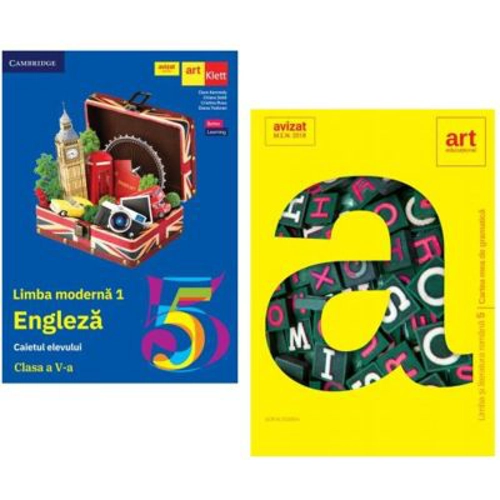 1. Limba engleza L1. Caietul elevului clasa a 5-a - Clare Kennedy Prezentul auxiliar a fost avizat de Ministerul Educatiei Nationale prin Ordinul nr. 3022 din 08. 01. 2018 si se regaseste la pozitia nr. 237 din anexa Ordinului. Lucrarea este realizata in conformitate cu programa pentru disciplina LIMBA MODERNA 1. Clasele a V-a - a Vlll-a, aprobata prin ordinul Ministerului Educatiei Nationale nr. 3393/2017. Aceasta lucrare poate fi utilizata cu oricare dintre manualele scolare aprobate, dar, pentru mai multa eficienta, recomandam folosirea caietului de lucru impreuna cu manualul Editurii Art, realizat in coeditare cu Cambridge University Press, autori: Clare Kennedy, Chiara Soldi, Cristina Rusu si Diana Todoran. 2. Cartea mea de gramatica DOOM3. Clasa a 5-a - Sofia Dobra editie revizuita conform DOOM3 Limba si literatura romana are un grad de dificultate sporit in clasa a 5-a, motivul fiind acela ca materia este foarte incarcata. Partea de gramatica va necesita o insusire temeinica a noilor notiuni, de catre elevi si, in egala masura, o comprehensiune a acestora. Tocmai de aceea, Cartea mea de gramatica vine sa-i sprijine pe elevi in intreg procesul de invatare. Cartea mea de gramatica pentru clasa a 5 a scrisa de catre Sofia Dobra si publicata la editura Art este un instrument de lucru necesar elevilor care doresc sa se pregateasca si de ce nu sa performeze la limba romana. Cu ajutorul acestei carti de gramatica, boboceii clasei a 5 a vor reusi sa asimileze mai usor noile concepte si vor reusi sa se pregateasca in mod continuu pentru activitatea de la clasa. Lucrare a fost conceputa in conformitate cu noua Programa scolara pentru disciplina LIMBA SI LITERATURA ROMANA (clasele a V-a - a Vlll-a) aprobata prin ordinul ministrului nr. 3393/28. 02. 2017 si a fost avizata de M. E. N. PE DATA DE 5 IANUARIE 2018. Prezentul auxiliar a fost avizat de Ministerul Educatiei Nationale prin Ordinul nr. 3022 din 08. 01. 2018 si se regaseste la pozitia nr. 161 din anexa Ordinului. Culegerea de limba si literatura romana pentru clasa a 5 a este de folos elevilor, indiferent de tipul de manual dupa care profesorul a ales sa se lucreze la clasa. Acest auxiliar este unul complex, din punctul de vedere al continutului teoretic, cat si practic. Cartea mea de gramatica reprezinta un auxiliar indispensabil orei de limba si literatura romana, deoarece: - cuprinde tot ceea ce trebuie sa stie si sa exerseze elevul la acest nivel; - propune un demers didactic coerent si eficient, in care elevul observa, invata, exerseaza si rezolva un test rapid; - cuprinde o varietate de aplicatii relevante si diversificate, care ii pun pe elevi in situatii de comunicare cotidiene; - ofera mici insertii teoretice a notiuniilor de vocabular, fonetica, morfologie si sintaxa, care reamintesc si fixeaza informatiile; - aduce informatii noi din Gramatica Academiei si DOOM2; - explica elevilor cele mai frecente dificultati gramaticale; - cuprinde lectii de recapitulare si teste sumative ; Scopul principal al orei de limba romana consta in dezvoltarea competentelor lingvistice ale elevilor, iar cartea mea de gramatica raspunde tuturor acestor nevoi. De asemenea, ea poate fi un material de ajutor in crearea intregului demers de predare al profesorului, care poate sa-si construiasca lectiile prin selectarea unor exercitii si, totodata, poate evalua nivelul asimilarii cunostintelor de catre acestia prin aplicarea testelor sumative. Cartea mea de gramatica clasa 5 editura art poate fi utilizata si acasa, avand o structura accesibila, putand fi considerata, de altfel, un ghid usor utilizabil si de catre elevi asistati de parinti, in exersarea si intelegerea mai aprofundata a lectiei de la clasa. Nu in ultimul rand, aceasta ii poate ajuta pe elevi si in pregatirea lor constanta in vederea participarii la diverse olimpiade scolare, deoarece contine si itemi cu o structura specifica concursurilor, itemi care, in cele mai multe cazuri, nu sunt cuprinsi in manualele scolare